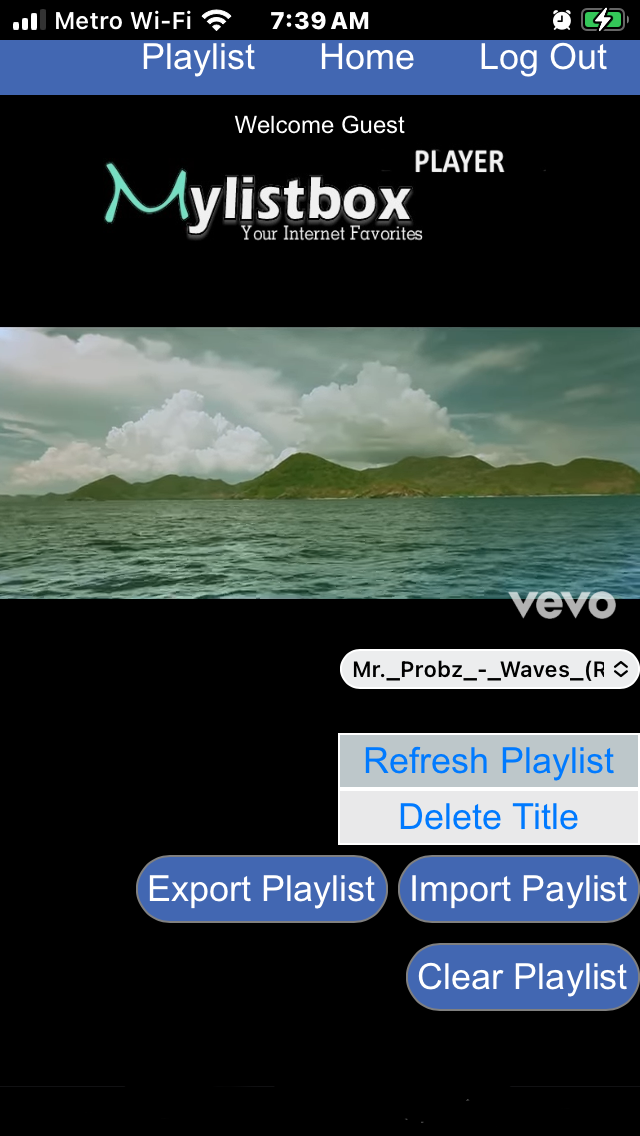 Use the "Export Playlist" button: to generate the file "mylistbox.json" in the download folder of your device. Share it with your friends!