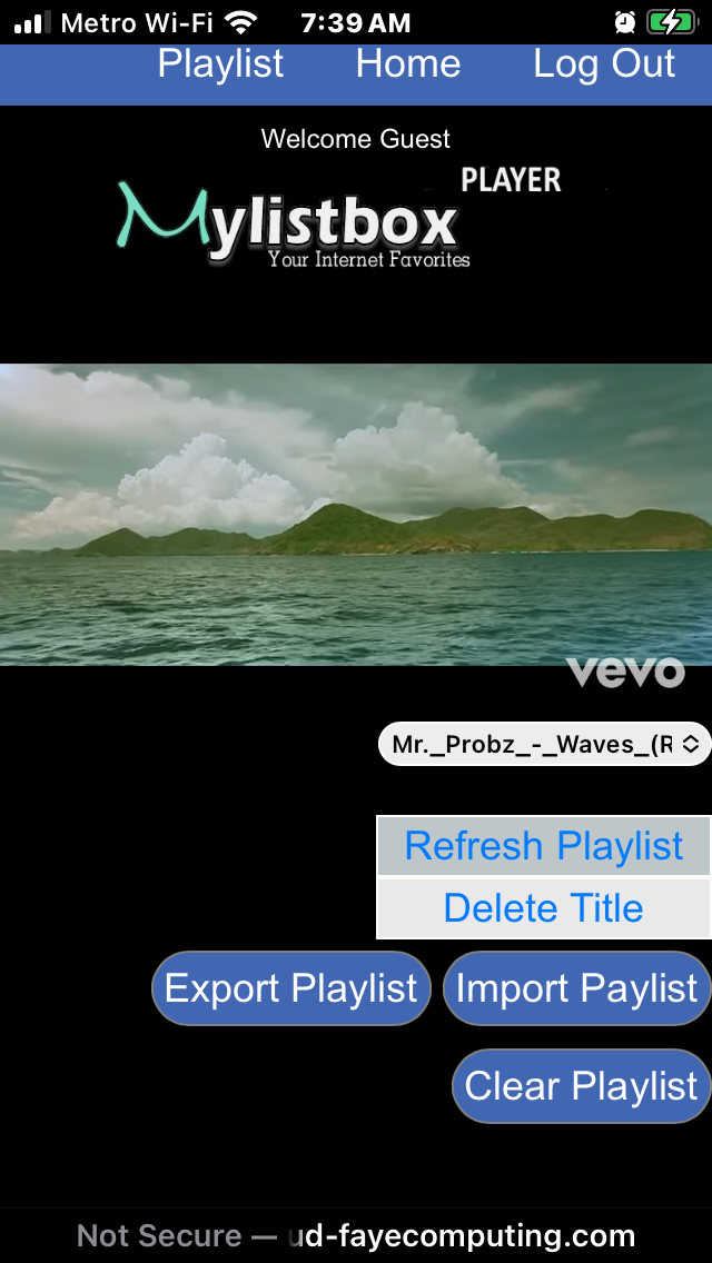 - Your playlist is stored in your browser. Use the 'Import/Export Playlist' buttons to transfert